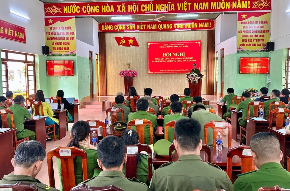 Ngày 05/01/2026, Công an phường Đông Gia Nghĩa tổ chức Hội nghị tổng kết với sự tham dự của đồng chí Bùi Thị Kim Thư, Phó bí thư Thường trực Đảng ủy phường; đồng chí Thạch Cảnh Tịnh, Phó bí thư Đảng ủy, Chủ tịch UBND phường; đồng chí Nguyễn Thị Ngọc, Ủy viên ban thường vụ Đảng ủy, Chủ tịch ủy ban MTTQVN phường và đại diện các phòng, ban, đơn vị thuộc Đảng ủy, UBND phường cùng tập thể chỉ huy và cán bộ, chiến sĩ Công an phường.
