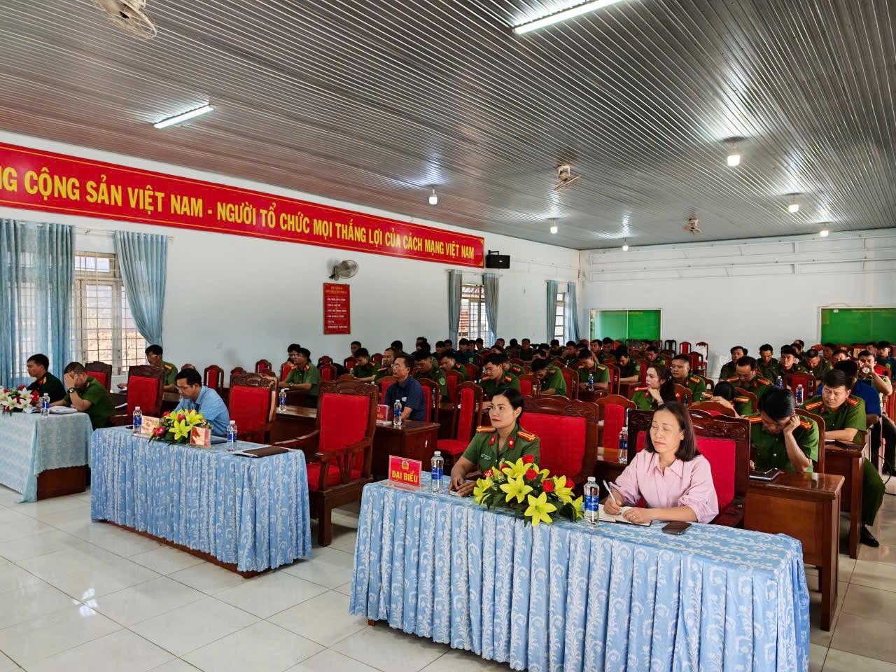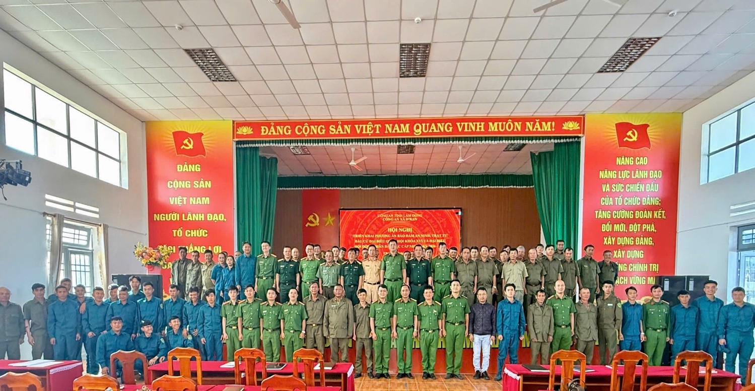 Các lực lượng tham dự Hội nghị triển khai phương án bảo đảm ANTT ngày bầu cử tại xã D’Ran