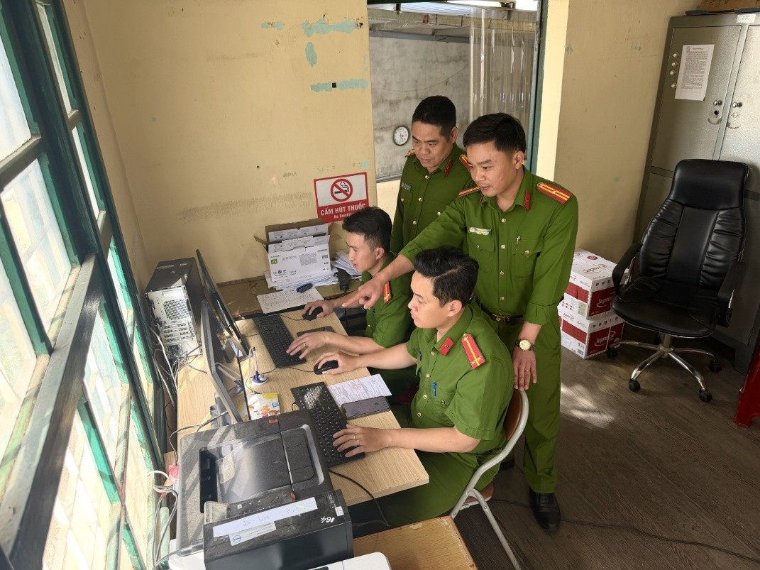 Công an xã Trà Tân tiến hành kiểm tra, kết hợp tuyên truyền, nhắc nhở các trường hợp vi phạm