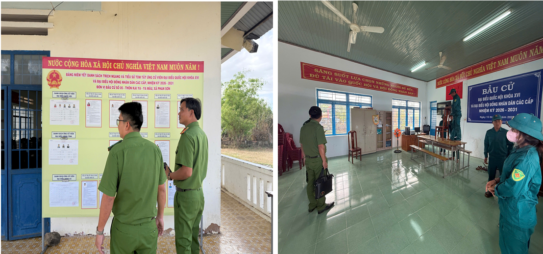 Tại một số địa bàn, lực lượng Công an cơ sở đã trực tiếp kiểm tra các điểm bầu cử, rà soát điều kiện bảo đảm an toàn, phòng cháy, chữa cháy, việc niêm yết danh sách cử tri, danh sách ứng cử viên, khu vực bỏ phiếu và các điều kiện phục vụ cử tri trong ngày bầu cử. Cùng với đó, công tác cập nhật, đối chiếu dữ liệu dân cư, rà soát danh sách cử tri tiếp tục được thực hiện chặt chẽ, bảo đảm thông tin đầy đủ, chính xác, không bỏ sót, trùng lặp; trong đó có địa phương đã hoàn thành niêm yết danh sách cử tri tại 100% khu vực bỏ phiếu.