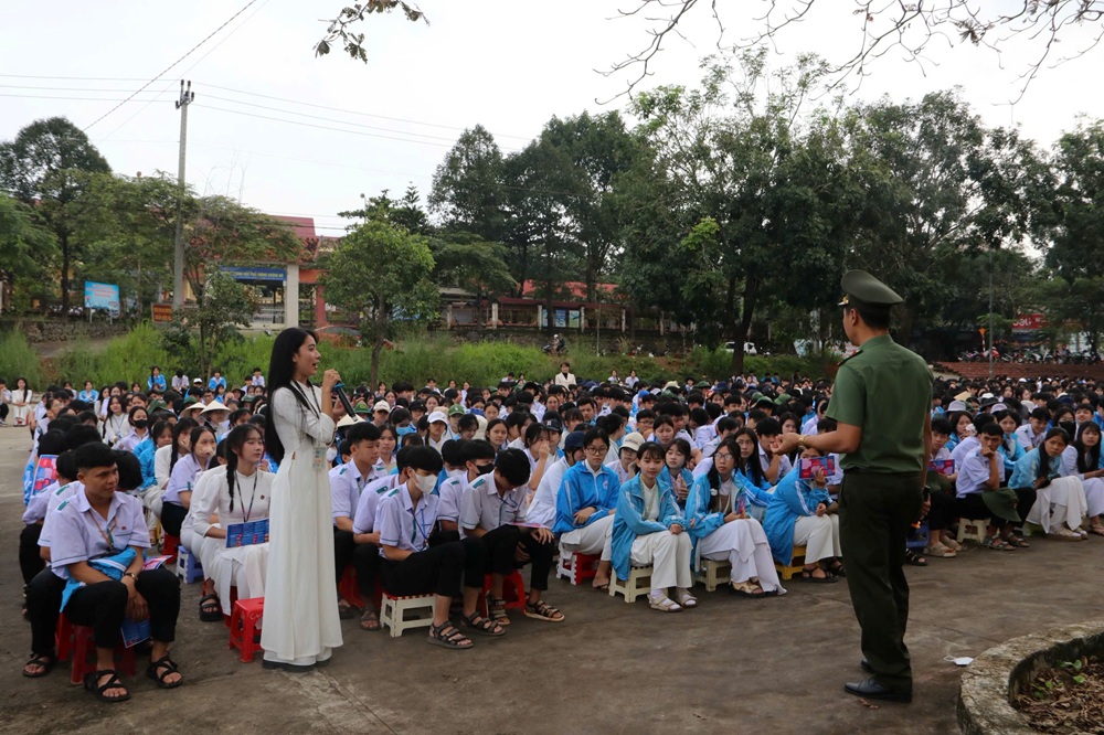 Sáng 26/11, Công an xã Krông Nô tổ chức buổi tuyên truyền chuyên đề tại Trường THPT Krông Nô với sự tham gia của hơn 1.550 học sinh và 97 giáo viên.