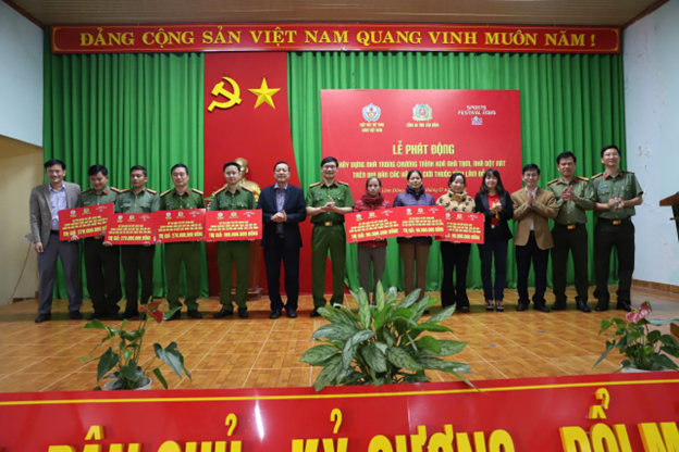 Tại buổi lễ, lãnh đạo Công an tỉnh, đại diện nhà tài trợ – Công ty Cổ phần NovaSports – đã trao bảng tượng trưng hỗ trợ kinh phí xây dựng cho địa phương. Đại diện doanh nghiệp chia sẻ mong muốn tiếp tục đồng hành cùng lực lượng Công an trong các chương trình vì cộng đồng, góp phần nâng cao đời sống người dân, đặc biệt tại khu vực biên giới.