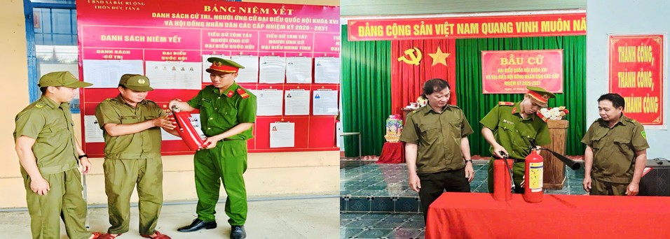 Công an xã Bắc Ruộng kiểm tra công tác PCCC và hướng dẫn sử dụng bình chữa cháy tại các điểm bầu cử