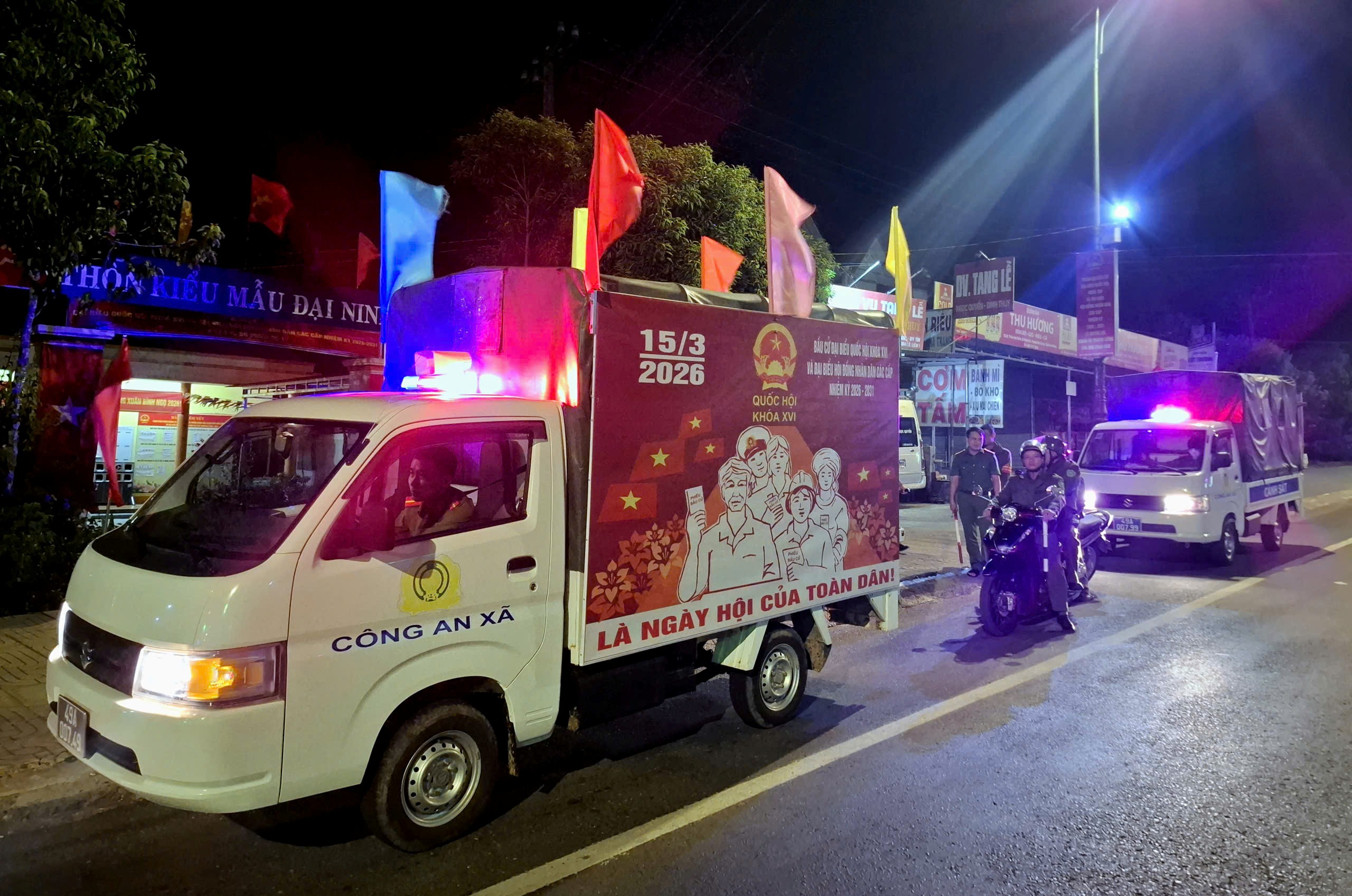 Tại xã Nam Thành, Công an xã triển khai đồng thời hai nhóm hoạt động trọng tâm gồm kiểm tra, hướng dẫn công tác phòng cháy, chữa cháy tại các khu vực bỏ phiếu và phối hợp tổ chức tuyên truyền lưu động về bầu cử. Qua kiểm tra thực tế, lực lượng Công an đã rà soát hệ thống điện, phương tiện chữa cháy tại chỗ, lối thoát nạn, khu vực đặt hòm phiếu, sân bãi để xe và kịp thời nhắc nhở khắc phục những tồn tại có nguy cơ mất an toàn. Song song với đó, Chi đoàn Công an xã phối hợp Đoàn Thanh niên xã sử dụng xe ô tô, xe máy gắn loa phát thanh, cờ phướn, băng rôn để tuyên truyền sâu rộng về thời gian, địa điểm bầu cử, quyền và nghĩa vụ của cử tri, góp phần lan tỏa không khí sôi nổi hướng về ngày hội toàn dân.