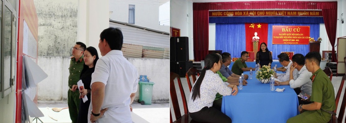 Công an xã Tân Thành phối hợp kiểm tra công tác chuẩn bị và điều kiện an toàn tại các điểm bầu cử