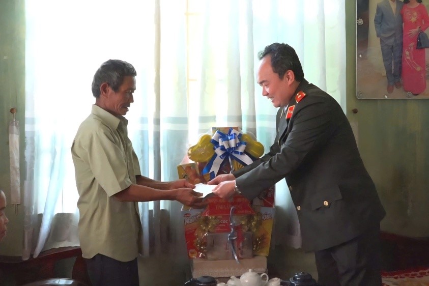 Đại tá Trần Văn Mười – Tỉnh ủy viên, Phó bí thư Đảng ủy, Phó Giám đốc Công an tỉnh đến thăm, tặng quà đối với gia đình liệt sĩ Vũ Văn Nam.