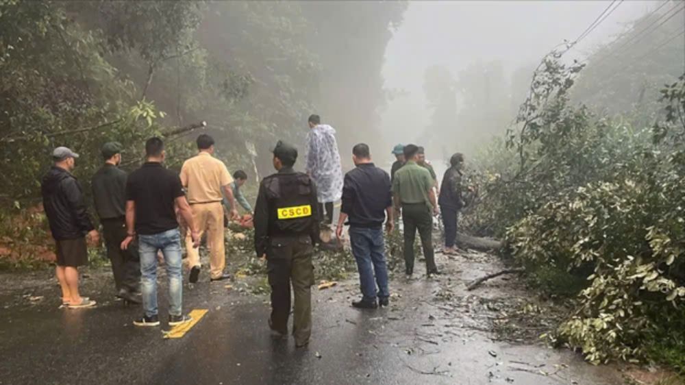 Sáng 24-7, do ảnh hưởng hoàn lưu bão số 3, mưa lớn kéo dài khiến nhiều tuyến đèo trên địa bàn tỉnh Lâm Đồng xuất hiện tình trạng cây xanh gãy đổ chắn ngang đường. Lực lượng Công an, CSGT và dân quân địa phương đã có mặt kịp thời, ứng trực 24/24, dọn dẹp đảm bảo giao thông an toàn.