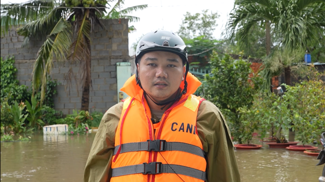 Ông Trần Hán Xuân Dũng, Tổ trưởng lực lượng tham gia đảm bảo trật tự an ninh tại cơ sở khu phố Kim Bình, Phường Hàm Thắng:“Được sự điều động và chỉ đạo của Công an phường, chúng tôi đã phối hợp chặt chẽ và tổ chức đưa người bị nạn, tài sản đến nơi an toàn; trong đó chúng tôi ưu tiên nhưng nơi có người già, phụ nữ và trẻ em”.