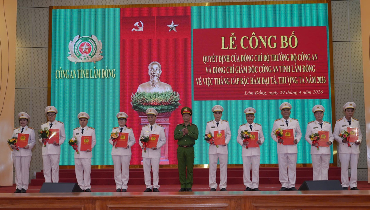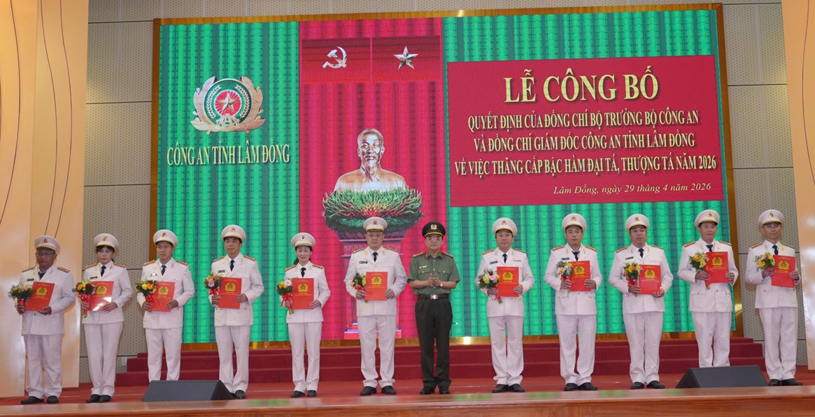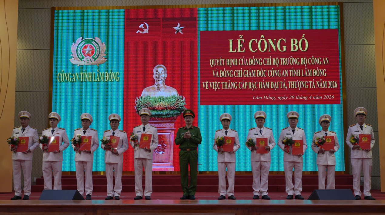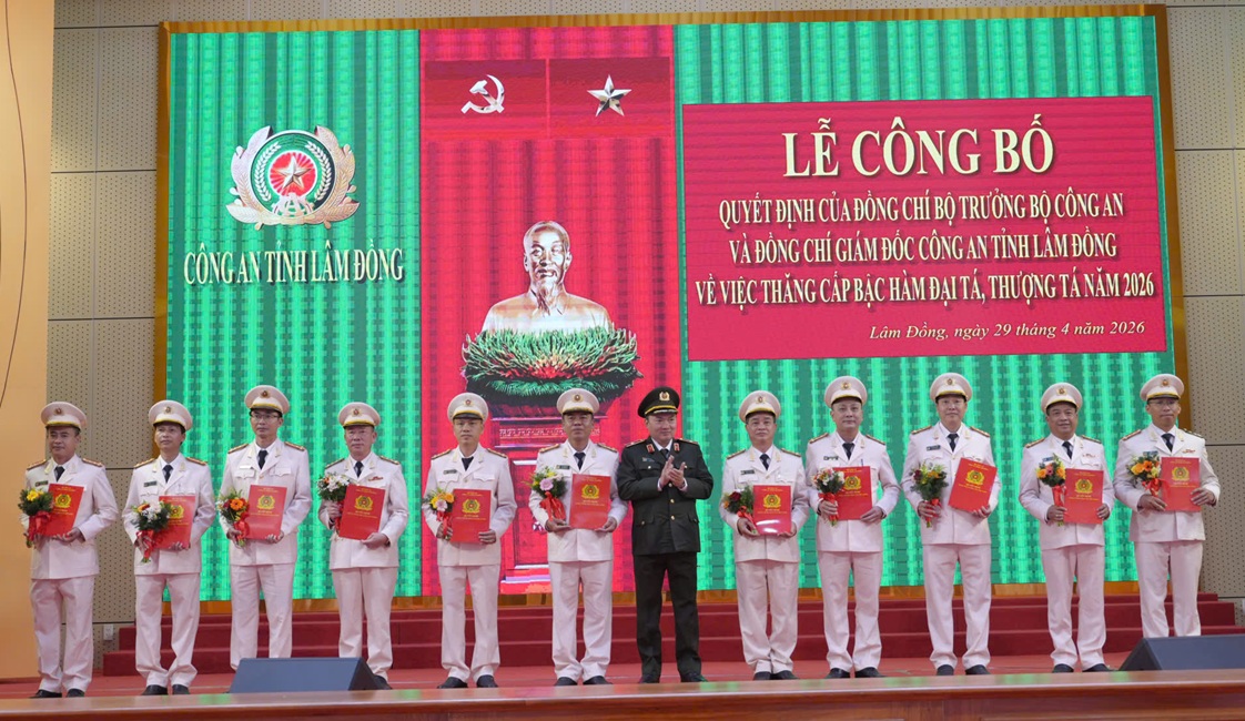 Lễ công bố quyết định thăng cấp bậc hàm năm 2026 của Công an tỉnh Lâm Đồng đã khép lại trong niềm tự hào và quyết tâm mới. Những ngôi sao trên quân hàm không chỉ lấp lánh niềm vinh quang của cá nhân mà còn thắp sáng thêm niềm tin của nhân dân vào một lực lượng Công an Lâm Đồng ngày càng chính quy, tinh nhuệ, hiện đại, sẵn sàng vì nước quên thân, vì dân phục vụ.