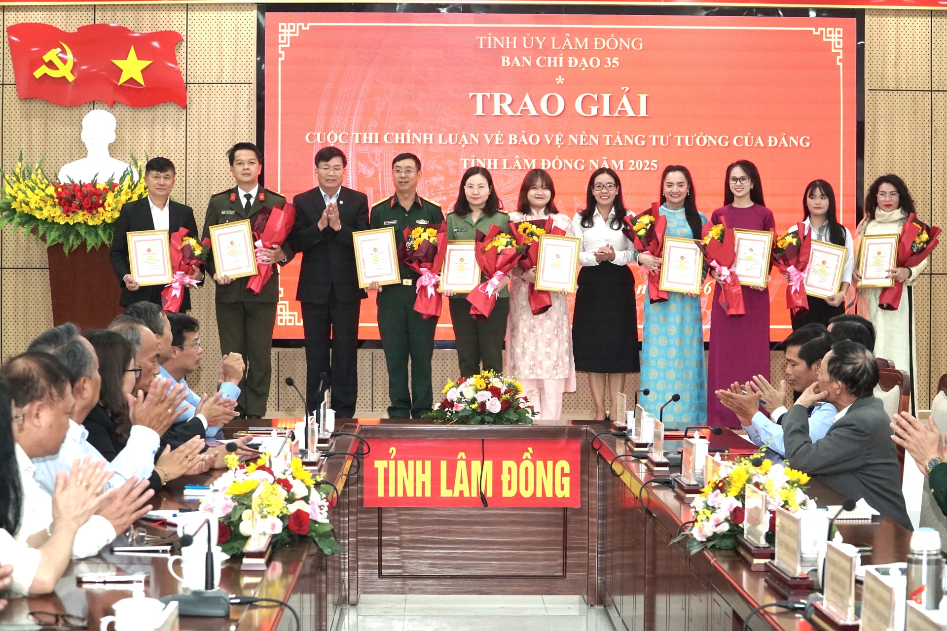 Cuộc thi năm nay thu hút 1.124 tác phẩm tham gia từ nhiều lực lượng như cán bộ, đảng viên, giáo viên, học sinh, sinh viên, nhà báo và văn nghệ sĩ. Nội dung các tác phẩm tập trung làm rõ những vấn đề trọng tâm về xây dựng Đảng, đấu tranh phản bác các quan điểm sai trái, thù địch; đồng thời đề xuất nhiều giải pháp thiết thực, có giá trị lý luận và thực tiễn. Với sự đầu tư nghiêm túc, tinh thần trách nhiệm cao và cách tiếp cận sáng tạo, các tác phẩm dự thi của Công an Lâm Đồng đã được Ban Tổ chức đánh giá cao cả về nội dung và hình thức thể hiện. Kết quả, Công an tỉnh Lâm Đồng đã xuất sắc đạt 07 giải thưởng, gồm: 02 giải A, 01 giải B, 02 giải C và 02 giải Khuyến khích. Đây là thành tích nổi bật, khẳng định bản lĩnh chính trị vững vàng, trình độ lý luận và khả năng đấu tranh trên mặt trận tư tưởng của đội ngũ cán bộ, chiến sĩ Công an tỉnh.