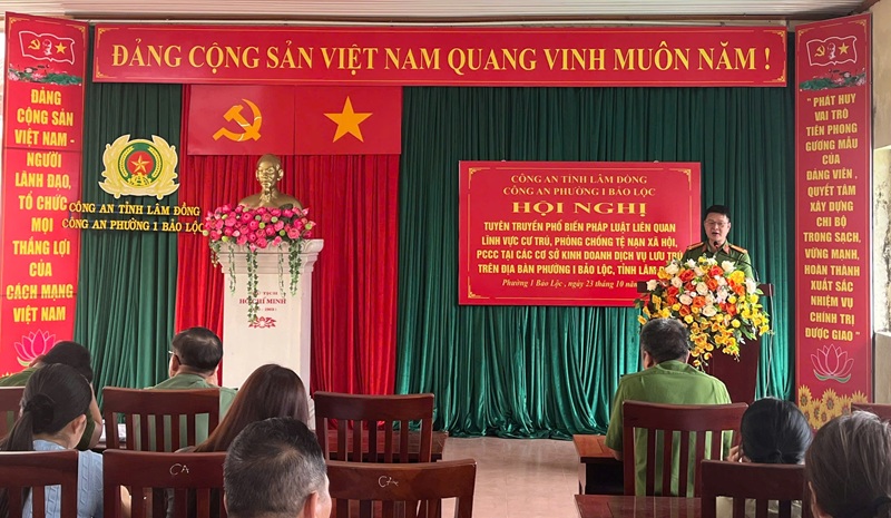 Phát biểu tại hội nghị, đồng chí Thiếu tá Phạm Thành Giang - Trưởng Công an phường nhấn mạnh: “Công tác quản lý cư trú, phòng cháy chữa cháy và phòng, chống tệ nạn xã hội là nhiệm vụ thường xuyên, liên quan trực tiếp đến an toàn tính mạng, tài sản của Nhân dân. Mỗi cơ sở kinh doanh dịch vụ lưu trú cần nêu cao tinh thần trách nhiệm, tự giác chấp hành quy định của pháp luật, cùng lực lượng Công an xây dựng phường 1 Bảo Lộc an toàn, văn minh và thân thiện.”
