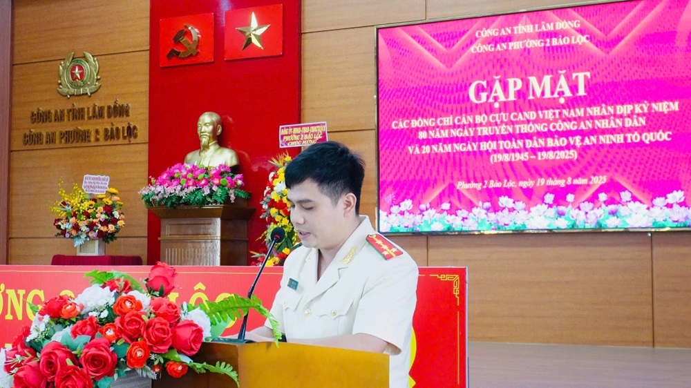 Phát biểu tại buổi lễ, Thượng tá Lê Văn Nam – Trưởng Công an Phường 2 Bảo Lộc nhấn mạnh: Những kết quả, thành tích mà Công an phường đạt được hôm nay là sự kế thừa, phát huy từ nền móng vững chắc do các thế hệ đi trước đã dày công xây dựng. Đồng chí khẳng định, lực lượng Công an phường sẽ tiếp tục phát huy truyền thống anh hùng, đoàn kết, nâng cao bản lĩnh chính trị, trình độ chuyên môn, hoàn thành tốt mọi nhiệm vụ được giao, xứng đáng với sự tin yêu của Đảng, chính quyền và nhân dân địa phương.