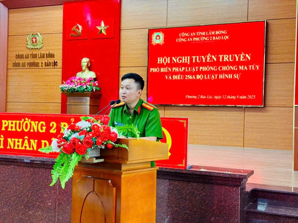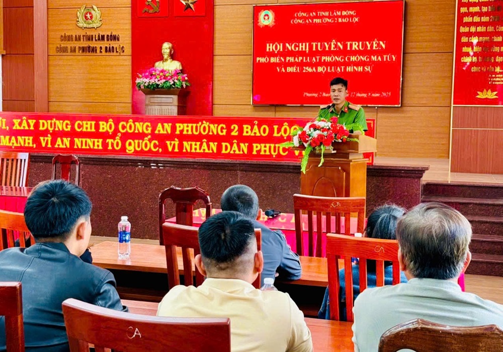 Qua hội nghị, Công an phường 2 Bảo Lộc đã tuyên truyền, giáo dục sâu sắc về tác hại của ma túy đối với đời sống, xã hội; đồng thời phổ biến các chủ trương, chính sách của Đảng và Nhà nước liên quan đến phòng, chống tội phạm ma túy, đặc biệt là Điều 256a Bộ luật Hình sự hiện hành. Cụ thể, khoản 20 Điều 1 Luật sửa đổi, bổ sung Bộ luật Hình sự năm 2025 đã bổ sung Điều 256a quy định về tội “Sử dụng trái phép chất ma túy” vào sau Điều 256 Bộ luật Hình sự năm 2015 (sửa đổi, bổ sung năm 2017), theo đó người có hành vi sử dụng trái phép chất ma túy có thể bị truy cứu trách nhiệm hình sự, phạt tù lên đến 5 năm, qua đó nâng cao ý thức tuân thủ pháp luật cho người dân và các đối tượng tham dự hội nghị.