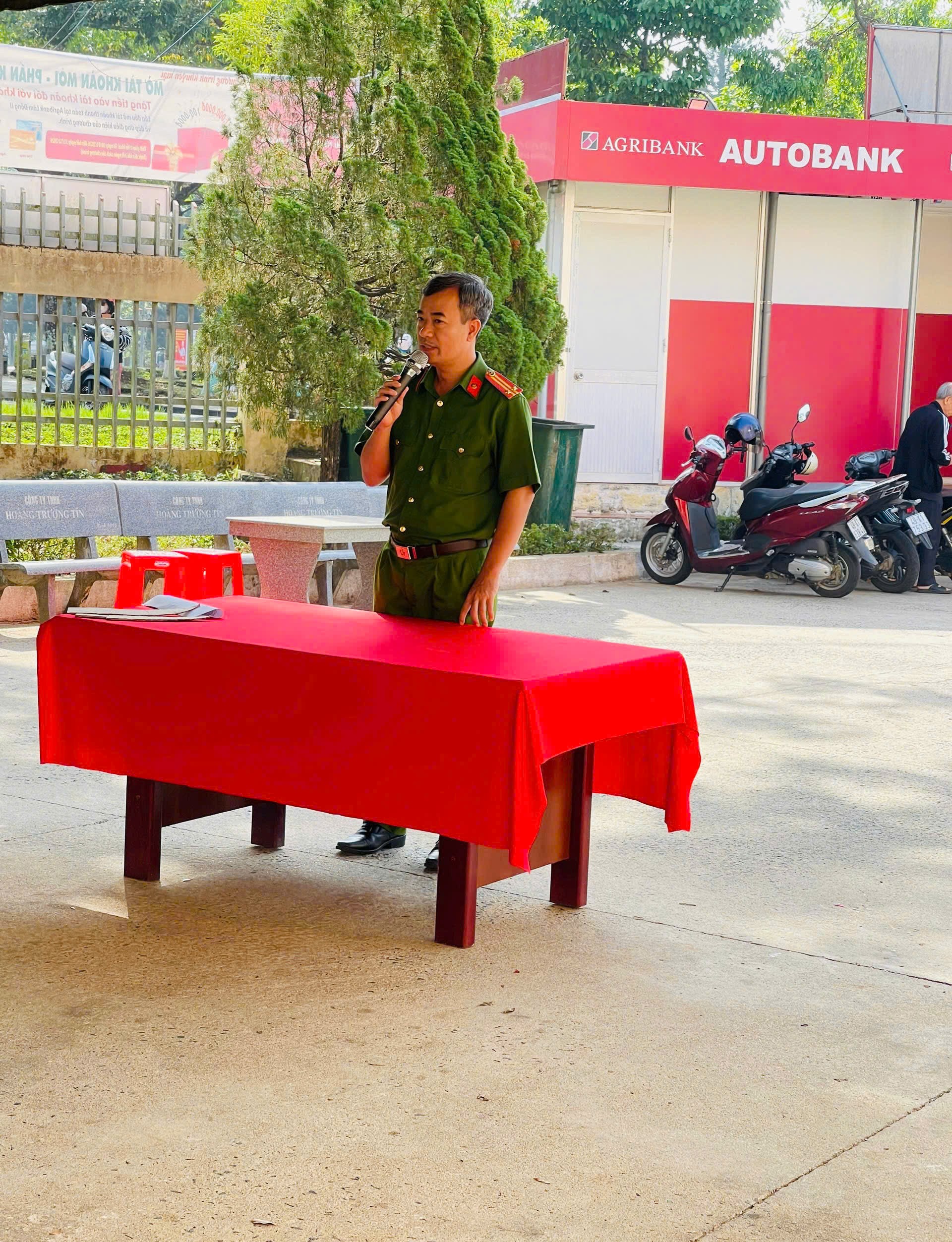 Chỉ huy Công an phường phát biểu tại buổi tập huấn kỹ năng, diễn tập phương án phòng, chống cướp ngân hàng