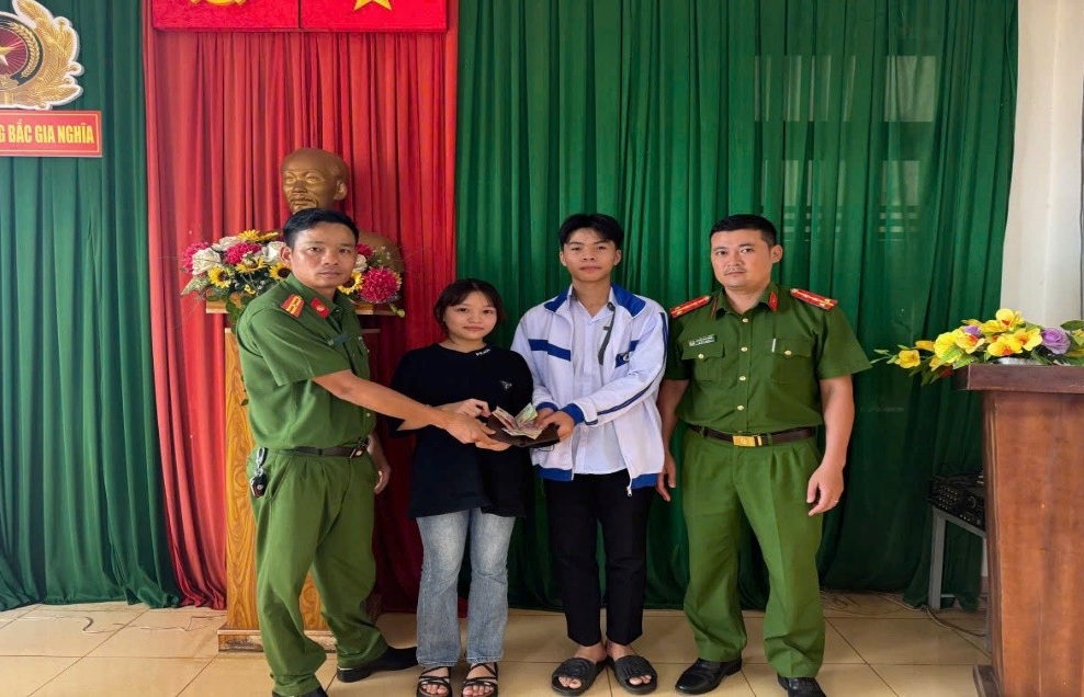Trước đó, vào ngày 05/9/2025, tại lễ khai giảng năm học mới 2025–2030, em Nguyễn Trung Bảo Nguyên – học sinh Trường THPT Gia Nghĩa – sau khi dự lễ khai giảng, trên đường trở về đã nhặt được một chiếc ví màu nâu. Bên trong ví có một số giấy tờ tùy thân và hơn 01 triệu đồng tiền mặt. Ngay lập tức, em Nguyên đã mang chiếc ví đến trình báo và giao nộp tại Công an phường Bắc Gia Nghĩa để nhờ lực lượng Công an hỗ trợ trả lại cho người đánh rơi. Sau khi xác minh, Công an phường đã liên hệ được với chủ nhân chiếc ví là anh Quách Hải Đăng (thường trú tại TDP Đắk Rmoan, phường Đông Gia Nghĩa) và hoàn tất thủ tục trao trả.