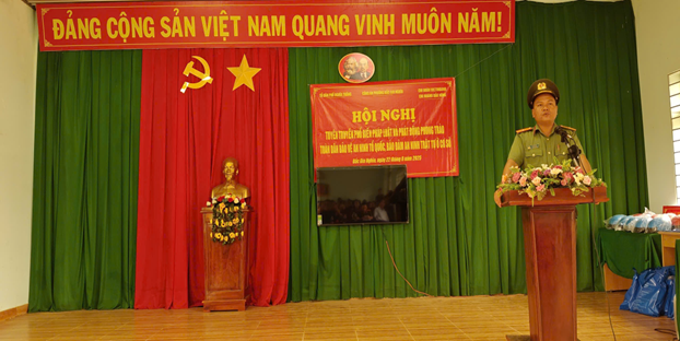 Nội dung tuyên truyền tập trung vào việc nâng cao nhận thức của quần chúng nhân dân trong sử dụng mạng xã hội an toàn, văn minh; nhận diện phương thức, thủ đoạn của tội phạm trên không gian mạng; các quy định về công tác xuất nhập cảnh; phổ biến Luật Phòng, chống ma túy; tuyên truyền phòng chống đuối nước cho trẻ em. Đồng thời, vận động Nhân dân tích cực tham gia tố giác tội phạm, giao nộp vũ khí, vật liệu nổ, công cụ hỗ trợ.