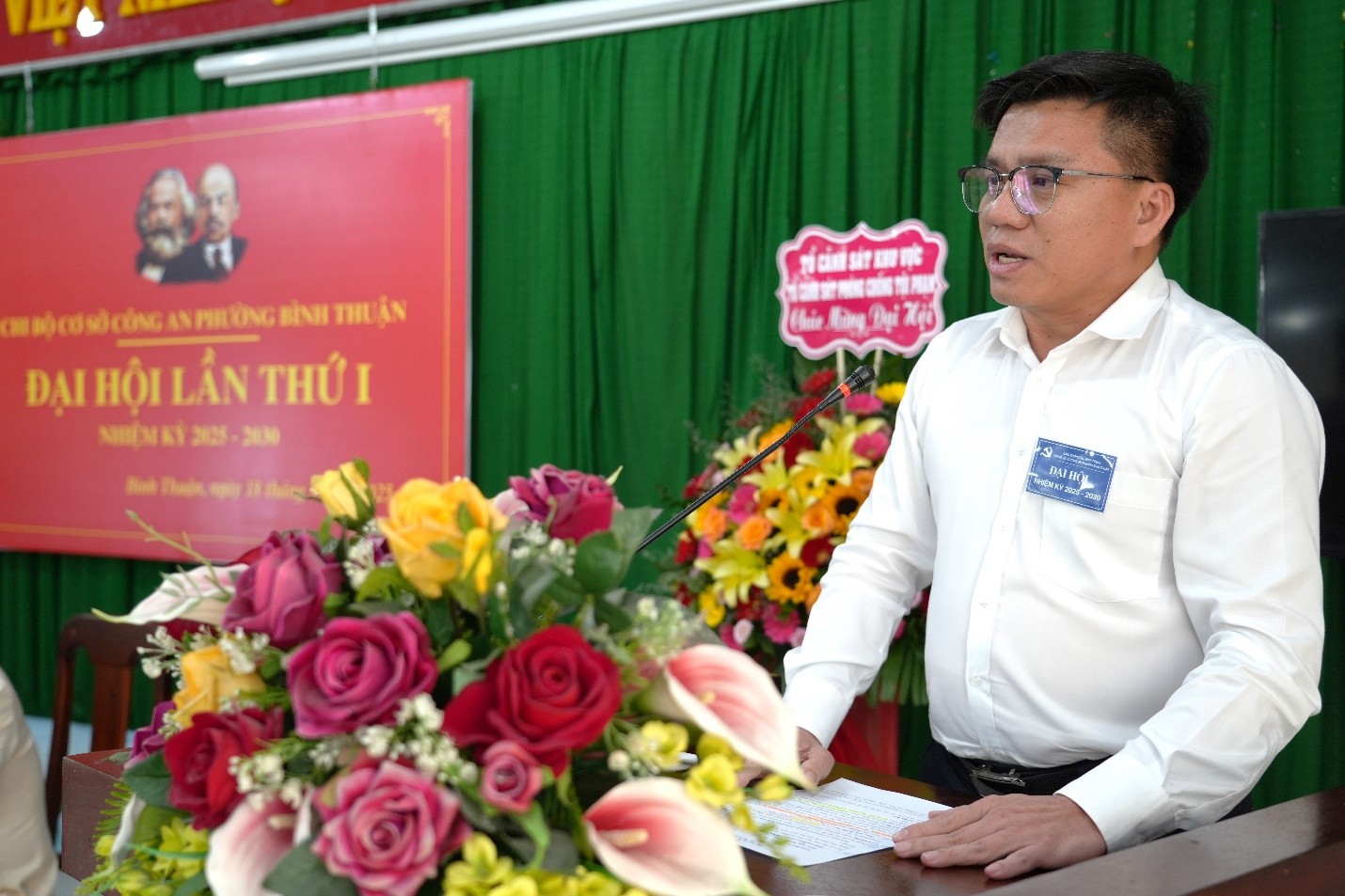 Trước thềm Đại hội, các đại biểu được nghe công bố Quyết định thành lập Chi bộ Công an phường Bình Thuận và Quyết định chỉ định cấp ủy Chi bộ Công an phường nhiệm kỳ 2025 - 2030 gồm 07 đồng chí. Trong đó, Thượng tá Nguyễn Ngọc Thanh - Trưởng Công an phường giữ chức Bí thư Chi bộ; Trung tá Nguyễn Thanh An - Phó Trưởng Công an phường giữ chức Phó Bí thư Chi bộ.