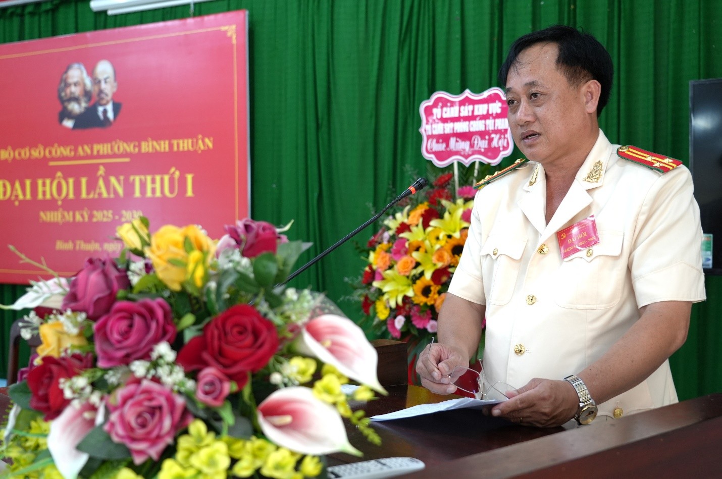 Phát biểu bế mạc Đại hội, Thượng tá Nguyễn Ngọc Thanh – Bí thư Chi bộ, Trưởng Công an phường Bình Thuận khẳng định: “Đại hội Chi bộ Công an phường lần thứ I, nhiệm kỳ 2025 – 2030 đã thành công tốt đẹp. Đây chính là động lực để toàn thể cán bộ, chiến sĩ hăng hái thi đua trong công tác, phấn đấu hoàn thành xuất sắc nhiệm vụ được giao”. Đồng chí Bí thư Chi bộ Công an phường cũng yêu cầu trong thời gian tới, cấp uỷ và tổ chức Đảng cần triển khai công tác tuyên truyền, phổ biến, quán triệt, học tập và xây dựng chương trình, kế hoạch hành động thực hiện Nghị quyết Đại hội; tổ chức tốt các phong trào thi đua sâu rộng trong cán bộ, đảng viên, sớm triển khai Nghị quyết Đại hội đạt hiệu quả.