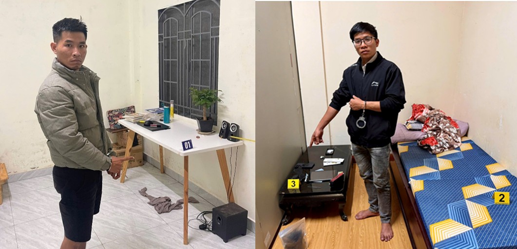 Hai đối tượng trộm cắp tài sản Võ Tấn Hoàng (bên trái) và Nguyễn Văn Nam (bên phải) bị bắt giữ