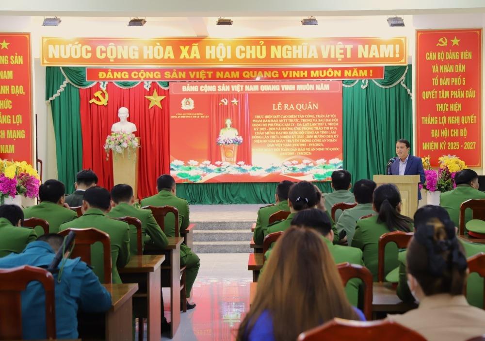 Tham dự có ông Chế Công Đức, Phó chủ tịch Uỷ ban nhân phường Cam Ly – Đà Lạt, đại diện lãnh đạo các đơn vị nghiệp vụ Công an tỉnh, tập thể chỉ huy, cán bộ chiến sỹ Công an phường và hơn 200 đoàn viên thanh niên, lực lượng tham gia bảo vệ an ninh trật tự ở cơ sở, dân quân tại địa phương.