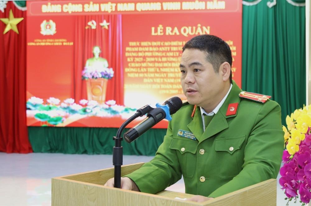Tại lễ phát động, Thượng tá Đàm Văn Khánh, Trưởng Công an phường Cam Ly – Đà Lạt nhấn mạnh đây là đợt cao điểm thi đua quan trọng, thể hiện tinh thần trách nhiệm, ý chí quyết tâm của toàn thể cán bộ, chiến sĩ trong đấu tranh, phòng chống các loại tội phạm, giữ vững ổn định an ninh trật tự địa phương hướng tới đảm bảo an ninh an toàn các sự kiện chính trị tại địa phương, thiết thực chào mừng Đại hội Đảng bộ Công an tỉnh; kỷ niệm 80 năm Ngày truyền thống lực lượng CAND và 20 năm Ngày hội toàn dân bảo vệ an ninh Tổ quốc. Qua đó yêu cầu cán bộ chiến sỹ trong toàn đơn vị luôn nêu cao tinh thần, trách nhiệm; chủ động nắm chắc tình hình, quản lý địa bàn, kịp thời tham mưu cho chỉ huy Công an phường triển khai các kế hoạch đảm bảo an ninh trật tự trên địa bàn. Phối hợp chặt chẽ với các ban, ngành, đoàn thể, các lực lượng tại địa phương tăng cường tuần tra khép kín trên địa bàn, kết tuyên truyền rộng rãi đến các tầng lớp nhân dân nâng cao ý thức cảnh giác các loại tội phạm, qua đó phát động mạnh mẽ phong trào toàn dân bảo vệ an ninh Tổ quốc.