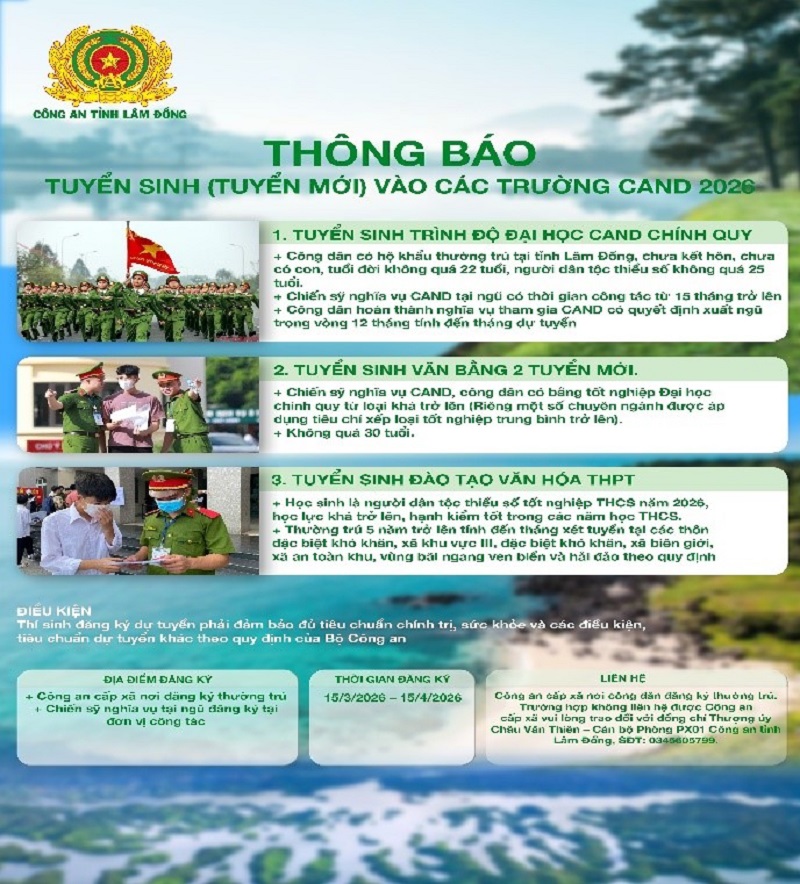 Thông tin tuyển sinh được niêm yết công khai tại các trường học, cơ quan và đăng tải trên các nền tảng mạng xã hội như Zalo, Facebook để học sinh, thanh niên và Nhân dân dễ dàng tiếp cận. Đồng thời, nội dung tuyển sinh cũng được lồng ghép trong các buổi tuyên truyền tại trường học nhằm định hướng, hỗ trợ học sinh có nguyện vọng tham gia lực lượng Công an nhân dân.