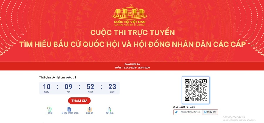 Giao diện chính của Cuộc thi trắc nghiệm trực tuyến “Tìm hiểu bầu cử Quốc hội và Hội đồng nhân dân các cấp”