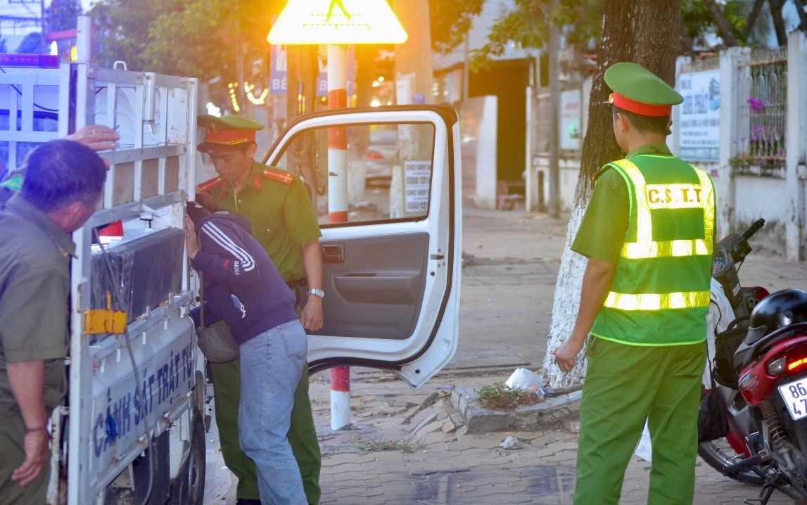 Quá trình tuần tra, lực lượng chức năng tiến hành nhắc nhở, lập biên bản đối với các trường hợp vi phạm, đồng thời tuyên truyền, vận động người dân chấp hành các quy định về trật tự đô thị.