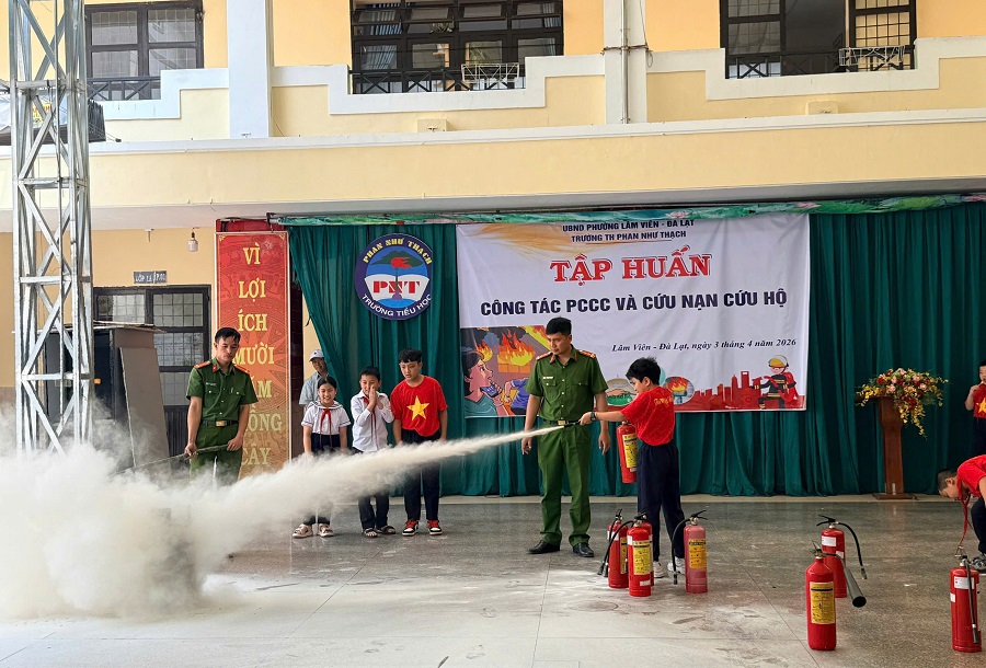 Tuyên truyền, tập huấn công tác PCCC và CNCH cho cán bộ, giáo viên và học sinh Trường Tiểu học Phan Như Thạch