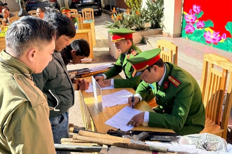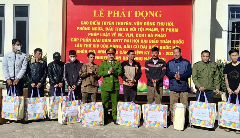 Hưởng ứng khẩu hiệu “Giao nộp vũ khí, vật liệu nổ, công cụ hỗ trợ đổi lấy lương thực”, buổi lễ đã thu hút hơn 50 lượt người dân tham gia, giao nộp gần 40 vũ khí, vật liệu nổ, công cụ hỗ trợ các loại, đồng thời trao tặng 18 suất lương thực, thực phẩm thiết yếu. Hoạt động không chỉ nâng cao tinh thần tự nguyện của người dân mà còn góp phần tăng cường hiệu quả công tác quản lý nhà nước, thúc đẩy phát triển kinh tế – xã hội địa phương.