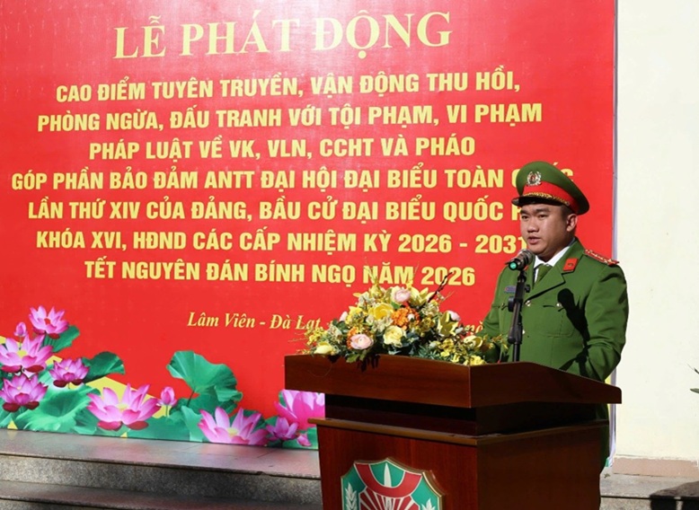 Phát biểu tại buổi lễ, đồng chí Đại úy Lê Ngô Hồng Vũ – UVBTV Đảng ủy, Bí thư Chi bộ, Trưởng Công an phường Lâm Viên – Đà Lạt, Phó Trưởng Ban chỉ đạo 138 phường – nhấn mạnh tầm quan trọng của công tác quản lý, sử dụng vũ khí, vật liệu nổ, công cụ hỗ trợ và pháo trong việc giữ gìn an ninh trật tự, bảo vệ sự bình yên của địa phương. Đồng chí kêu gọi toàn thể hệ thống chính trị, các tổ chức đoàn thể và người dân cùng chung tay thực hiện nghiêm túc, hiệu quả các nội dung cao điểm, hướng đến xây dựng phong trào toàn dân bảo vệ an ninh Tổ quốc.