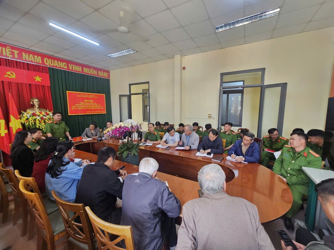 Phát biểu tại hội nghị, đồng chí Đại úy Lê Ngô Hồng Vũ nhấn mạnh: cuộc bầu cử đại biểu Quốc hội khóa XVI và đại biểu Hội đồng nhân dân các cấp nhiệm kỳ 2026 – 2031 là sự kiện chính trị quan trọng của đất nước. Do đó, công tác bảo đảm an ninh trật tự phải được triển khai chủ động, chặt chẽ và hiệu quả. Đồng chí yêu cầu các lực lượng liên quan tiếp tục tăng cường phối hợp, phát huy vai trò, trách nhiệm trong từng nhiệm vụ được phân công, đặc biệt là công tác rà soát danh sách cử tri, phát thẻ cử tri và bảo đảm an ninh, an toàn tại các khu vực bỏ phiếu.