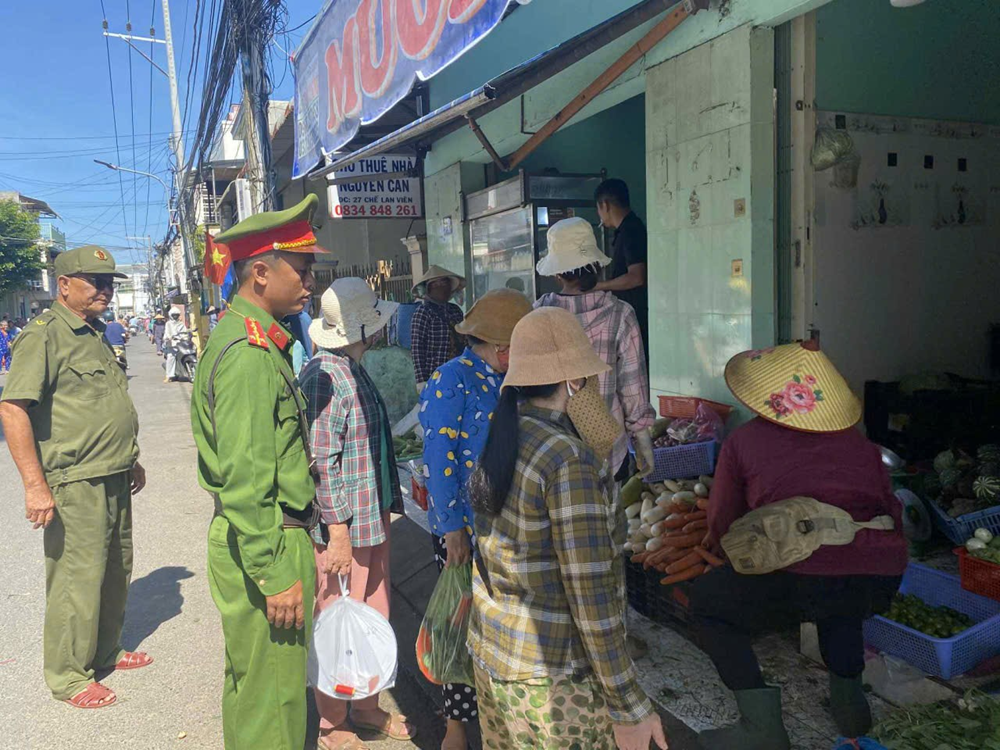 Công an phường Mũi Né tổ chức lực lượng đảm bảo trật tự lòng, lề đường tại chợ Mũi Né