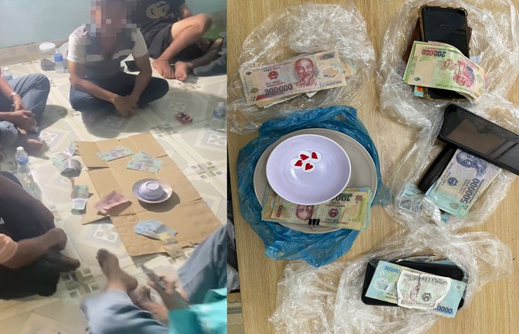 Qua kiểm tra tại hiện trường, lực lượng chức năng thu giữ trên chiếu bạc số tiền 13.950.000 đồng cùng nhiều tang vật phục vụ việc đánh bạc như chén, đĩa và các đồng vị được cắt từ lá bài tây. Ngoài ra, qua kiểm tra trên người các đối tượng còn phát hiện hơn 20.000.000 đồng tiền mặt.