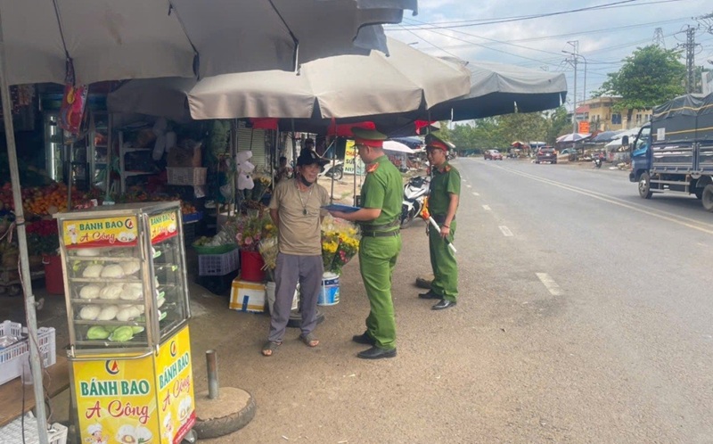 Công an phường Nam Gia Nghĩa ra quân triển khai công tác tuyên truyền, nhắc nhở tình trạng lấn chiếm lòng đường, hành lang vỉa hè để kinh doanh buôn bán