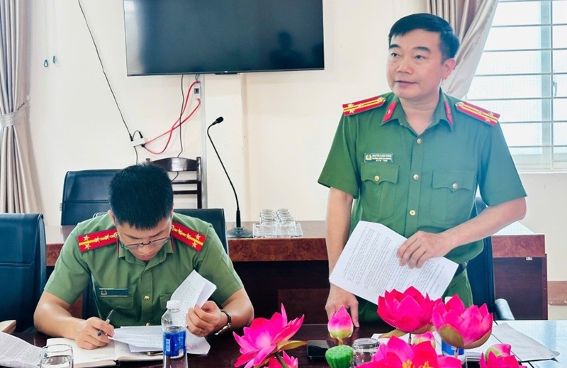 Đại tá Nguyễn Tường Vũ – Phó Giám đốc Công an tỉnh phát biểu chỉ đạo tại buổi kiểm tra
