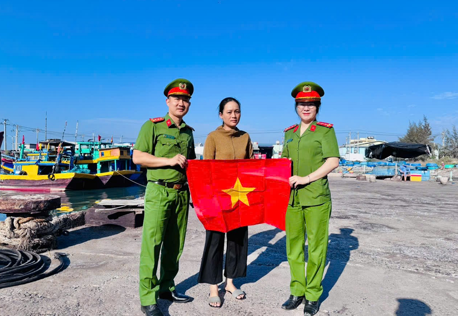 Tuổi trẻ Công an phường tặng cờ Tổ quốc kết hợp tuyên truyền bầu cử đối với bà con ngư dân