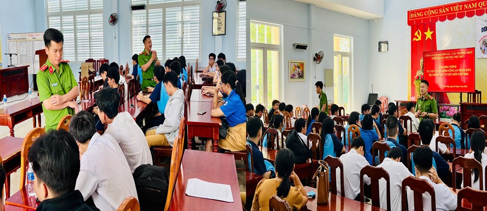 Cán bộ Công an phường Phú Thủy phối hợp tư vấn tuyển sinh