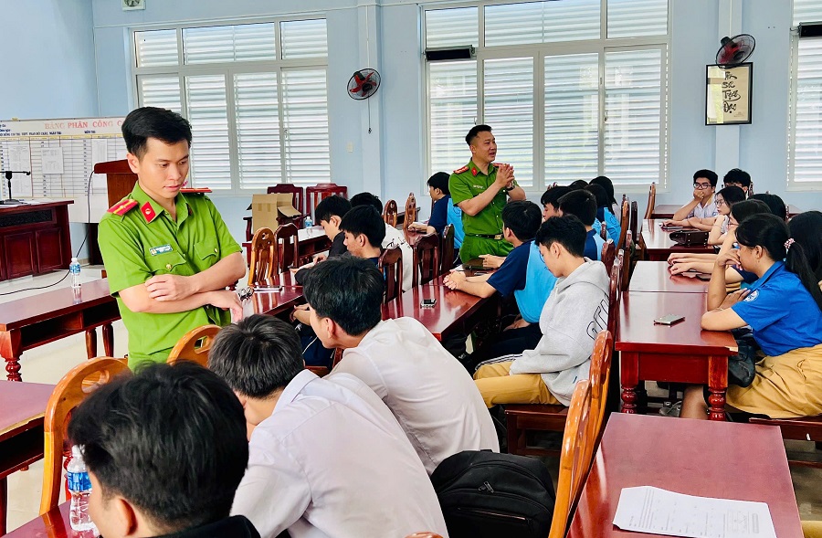 Cán bộ Công an giải đáp thắc mắc cho các bạn học sinh