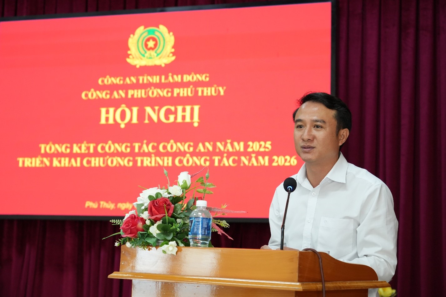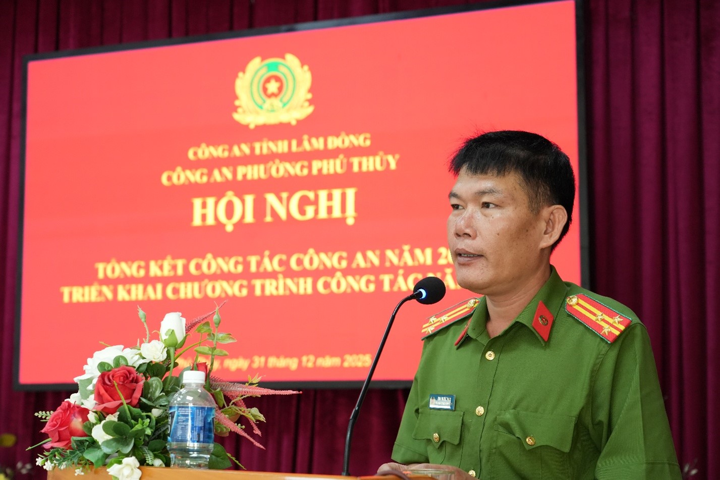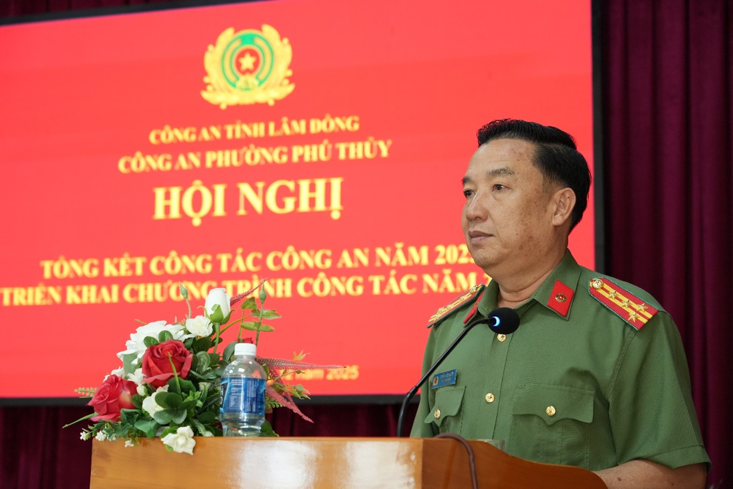 Phát biểu chỉ đạo, Đại tá Trần Văn Mười – Phó Giám đốc Công an tỉnh ghi nhận, biểu dương sự nỗ lực, quyết tâm của tập thể chỉ huy, cán bộ, chiến sĩ Công an phường Phú Thủy đã triển khai hiệu quả các mặt công tác trong năm 2025; đồng thời yêu cầu đơn vị tiếp tục siết chặt kỷ luật, kỷ cương, đề cao trách nhiệm nêu gương; chủ động phòng ngừa, không để phát sinh “điểm nóng”, không để bị động, bất ngờ trong mọi tình huống. Cùng với đó, đồng chí Phó Giám đốc đề nghị đơn vị triển khai hiệu quả phong trào thi đua “Ba nhất” trong Công an nhân dân do Bộ Công an phát động: “Kỷ luật nhất – Trung thành nhất – Gần dân nhất”, nhất là lắng nghe, giải quyết kịp thời kiến nghị chính đáng của Nhân dân, lấy sự hài lòng của Nhân dân làm thước đo trong thực hiện nhiệm vụ.