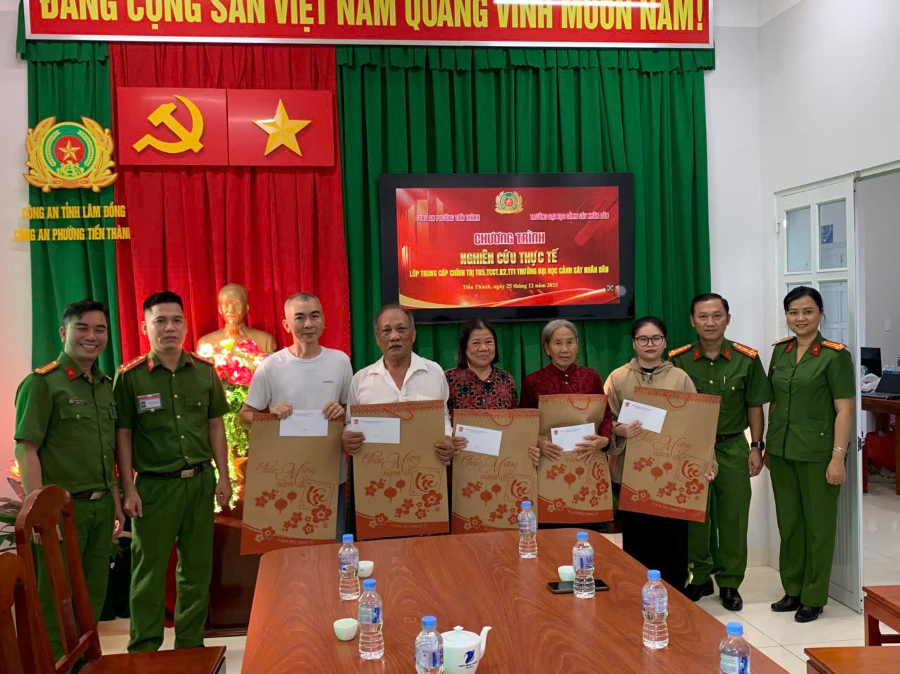 Trong khuôn khổ chương trình, Đoàn Trường Đại học Cảnh sát nhân dân đã trao tặng quà lưu niệm cho Công an phường Tiến Thành. Phần quà tuy giá trị vật chất không lớn nhưng thể hiện tình cảm, sự gắn bó, tinh thần đoàn kết, đồng chí, đồng đội trong lực lượng Công an nhân dân.