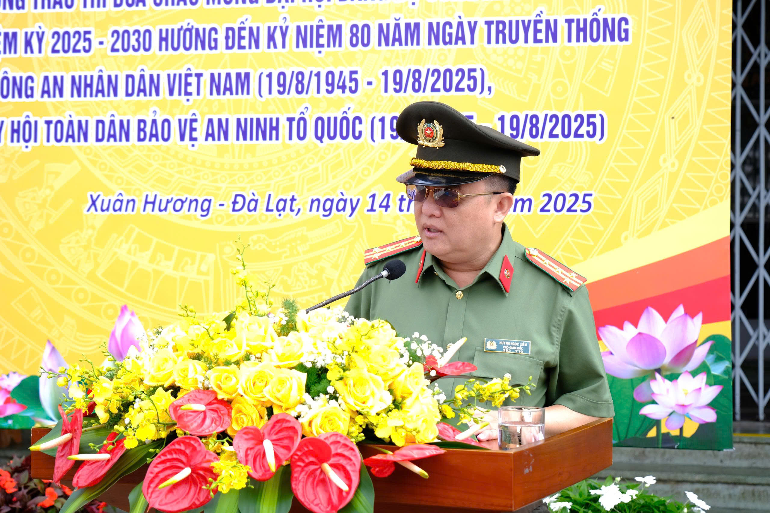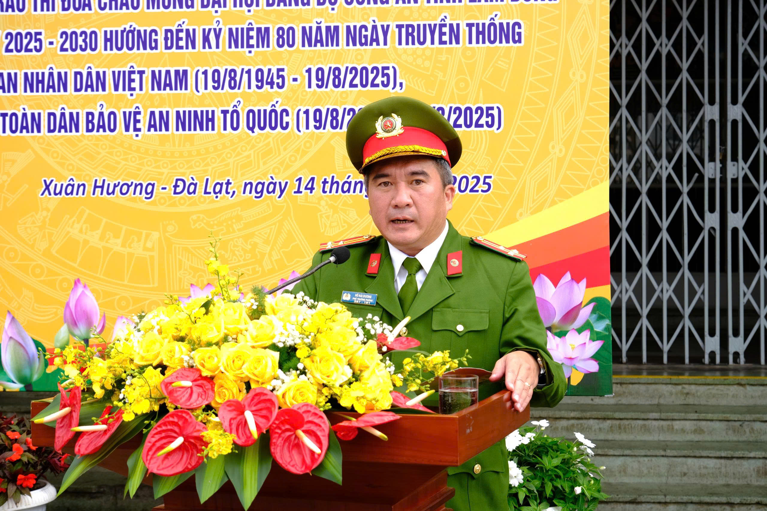Đại tá Huỳnh Ngọc Liêm, Phó Giám đốc Công an tỉnh Lâm Đồng phát biểu tại Lễ ra quân