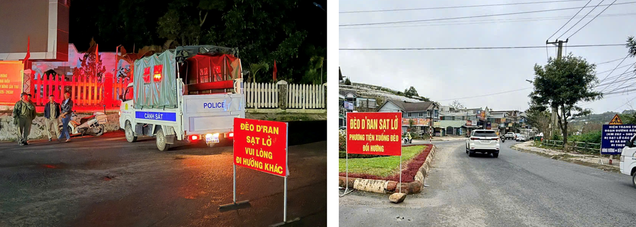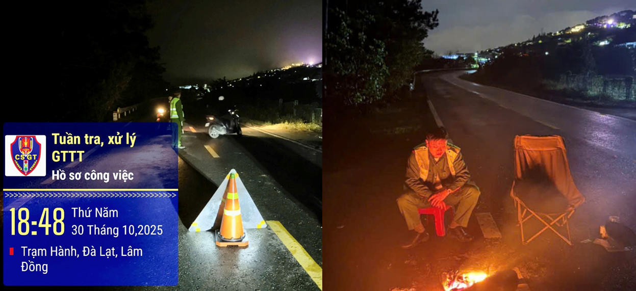 Ngay sau khi sạt lở xảy ra, Công an phường Xuân Trường – Đà Lạt đã khẩn trương triển khai các tổ công tác xuống hiện trường, lập rào chắn, cắm biển cảnh báo, đồng thời điều tiết giao thông tại hai đầu đèo. Các cán bộ, chiến sĩ thay phiên nhau trực 24/24 giờ, trong điều kiện thời tiết mưa lạnh, sương mù dày đặc và nguy cơ sạt lở vẫn còn cao. Dù vất vả, ai nấy đều xác định tinh thần “vì nhân dân phục vụ”, quyết tâm giữ an toàn tuyệt đối cho người dân và du khách.