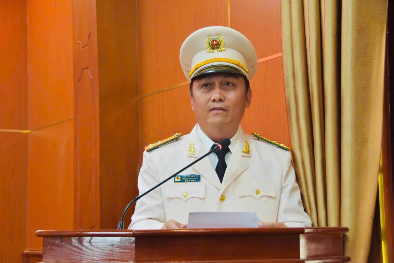 Đại tá Trần Văn Mười, Phó Giám đốc Công an tỉnh phát biểu tại Lễ công bố Quyết định