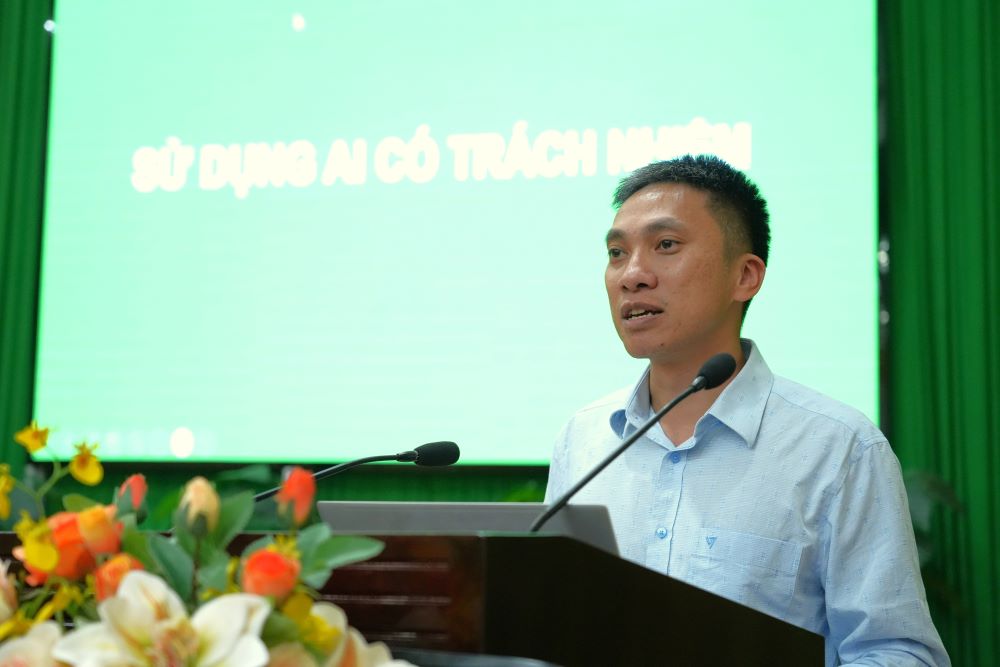 Tiến sĩ Trần Ngô Như Khánh, Trưởng khoa Công nghệ thông tin, Trường Đại học Đà Lạt đã trực tiếp truyền đạt chuyên đề “Ứng dụng công nghệ trí tuệ nhân tạo (AI) trong công tác truyền thông, tuyên truyền”