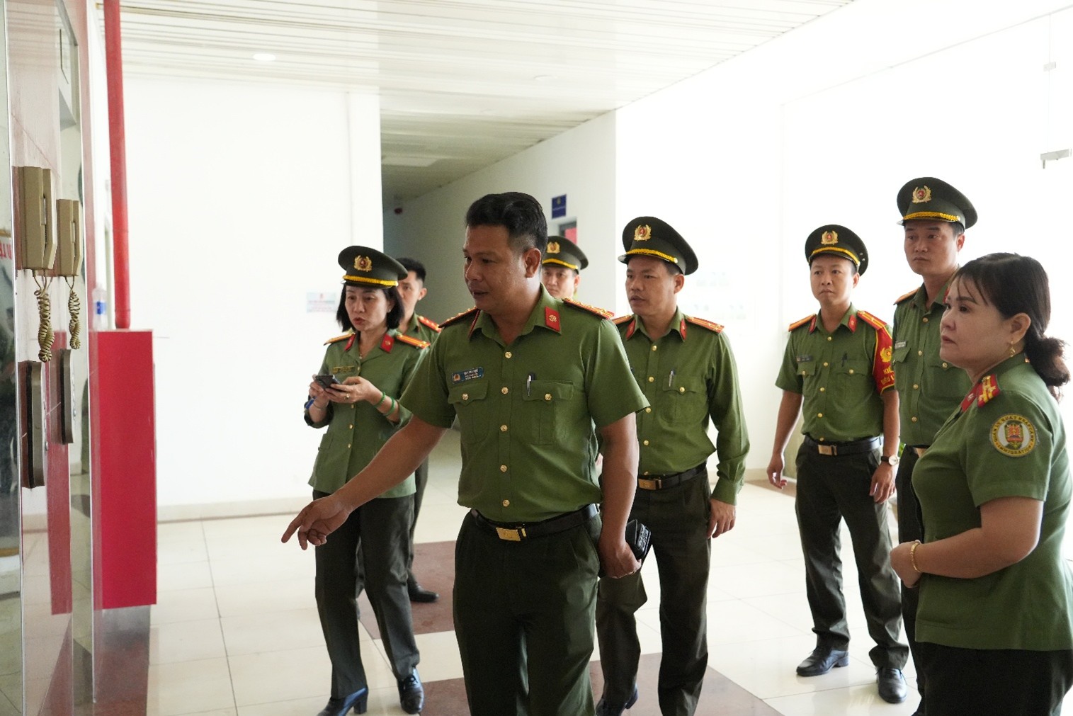 Đại tá Nay Gia Phú, Phó Giám đốc Công an tỉnh dẫn đầu đoàn công tác kiểm tra tại tòa nhà làm việc của khối an ninh
