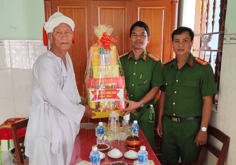 Công an xã Hồng Thái thăm tặng quà Chức sắc, người có uy tín trong tôn giáo nhân dịp Tết Katê