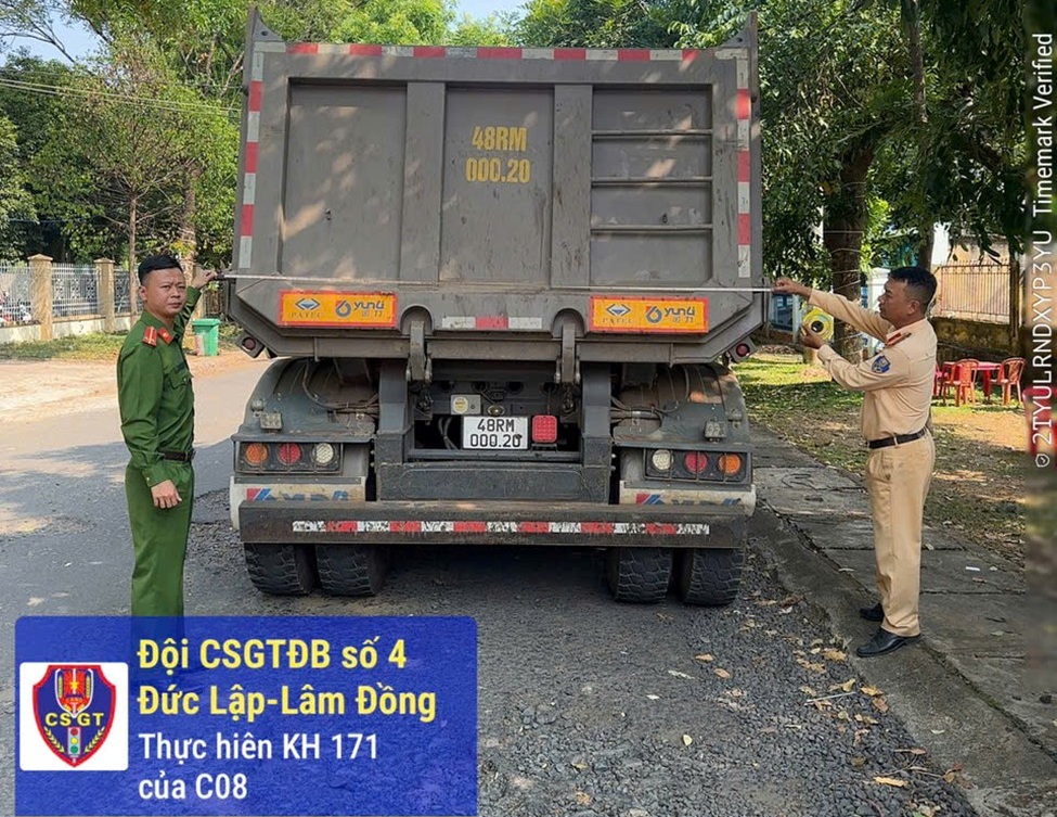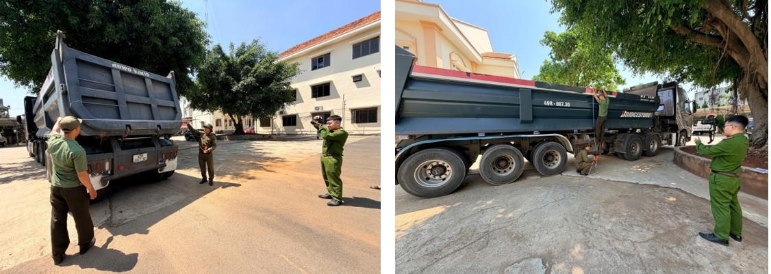 Công an phường Cam Ly - Đà Lạt đã chủ động phối hợp triển khai tổng rà soát phương tiện ô tô tải tự đổ và xe sơ mi rơ moóc tự đổ có tải trọng từ 15.000kg trở lên. Lực lượng Công an tập trung kiểm tra doanh nghiệp, hợp tác xã, chủ phương tiện và lái xe; xác minh thông tin chủ sở hữu, kiểm tra tình trạng kỹ thuật phương tiện, kích thước thùng xe nhằm phát hiện, xử lý các trường hợp cơi nới, cải tạo trái phép; đồng thời kiểm tra việc lắp đặt thiết bị giám sát hành trình, biển số theo quy định.