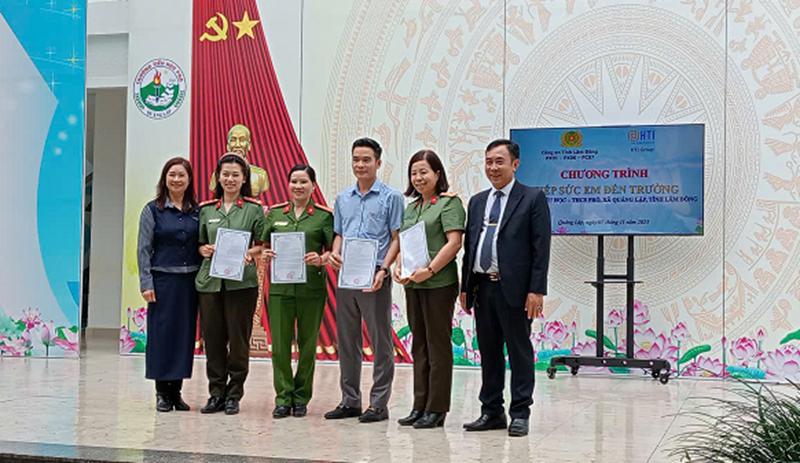 Tham dự chương trình có đại diện lãnh đạo Cơ quan Ủy ban kiểm tra Đảng ủy Công an tỉnh, Phòng Tổ chức cán bộ, Phòng Cảnh sát PCCC và CNCH, Công an xã Quảng Lập, Công ty HTI cùng các thầy cô giáo và đông đảo học sinh.