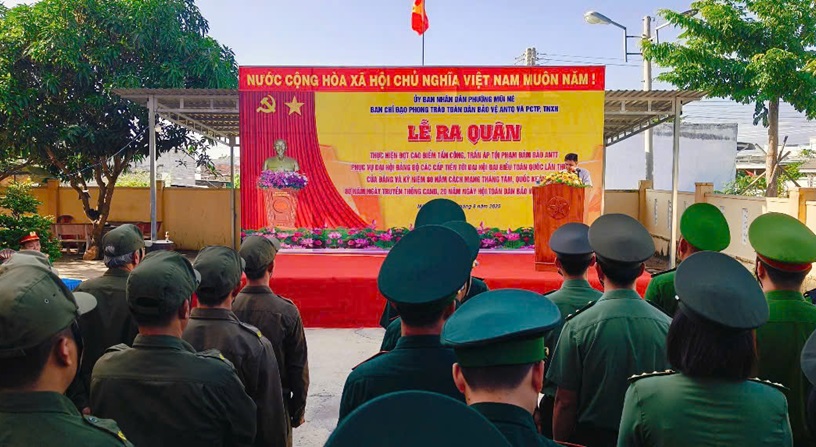 Đồng chí Đại tá Trần Văn Mười - Phó Giám đốc Công an tỉnh phát lệnh ra quân tại Công an phường Phan Thiết